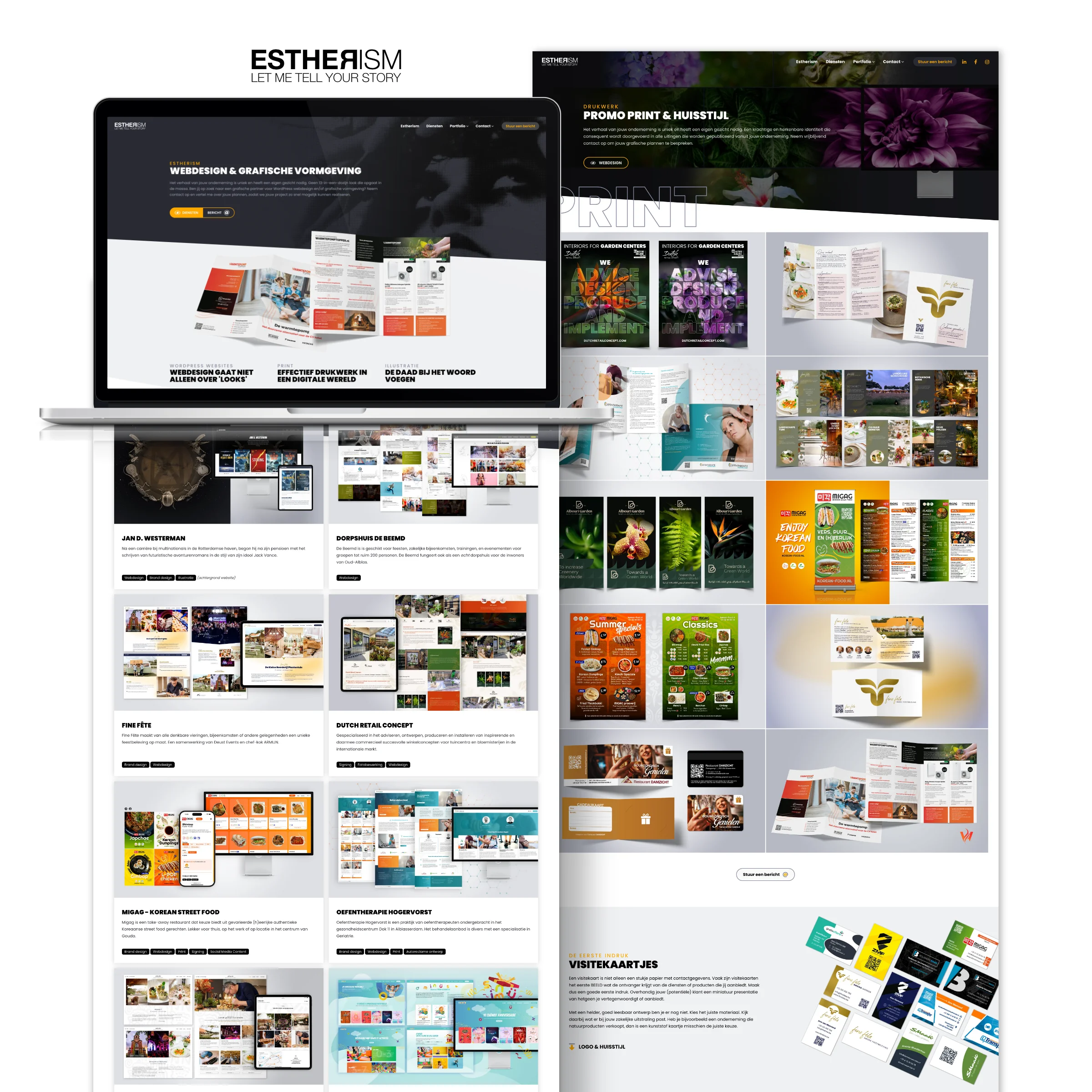 Om een indruk te krijgen van mijn werk nodig ik je graag uit voor een bezoek aan mijn online portfolio Estherism.nl