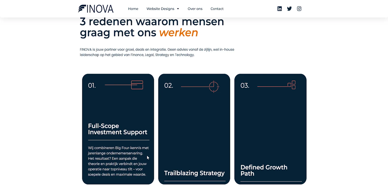 Dit ontwerp ademt transparantie, stabiliteit en professionaliteit – precies wat bezoekers van een finance of legal website verwachten. Met een strak en modern design, heldere typografie en een overzichtelijke structuur voelt de website direct betrouwbaar en toegankelijk. Het ontwerp legt de nadruk op expertise en zekerheid, waardoor cliënten vertrouwen krijgen en zich gesteund voelen in hun financiële en juridische beslissingen.