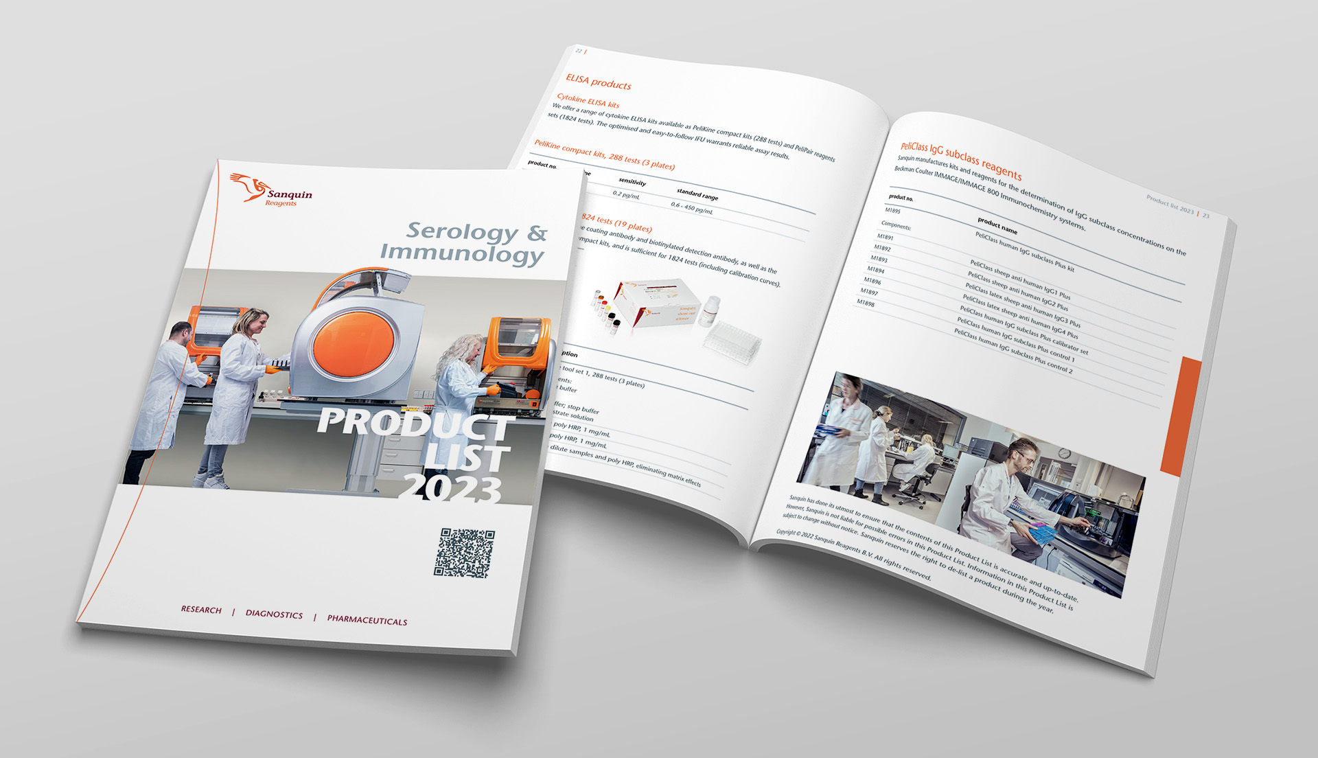 Sanquin is een non-profitorganisatie die verantwoordelijk is voor bloed en bloedproducten voor de Nederlandse gezondheidszorg. Waar grote machines voorheen de dienst uitmaken bij bloedtesten heeft Sanquin ‘s-werelds eerste desktopmachine ontwikkeld speciaal voor kleine laboratoria. Voor de afdeling reagents en diagnostiek is een catalogus gemaakt. Jaarlijks wordt deze geactualiseerd en opnieuw uitgebracht in drukwerk.