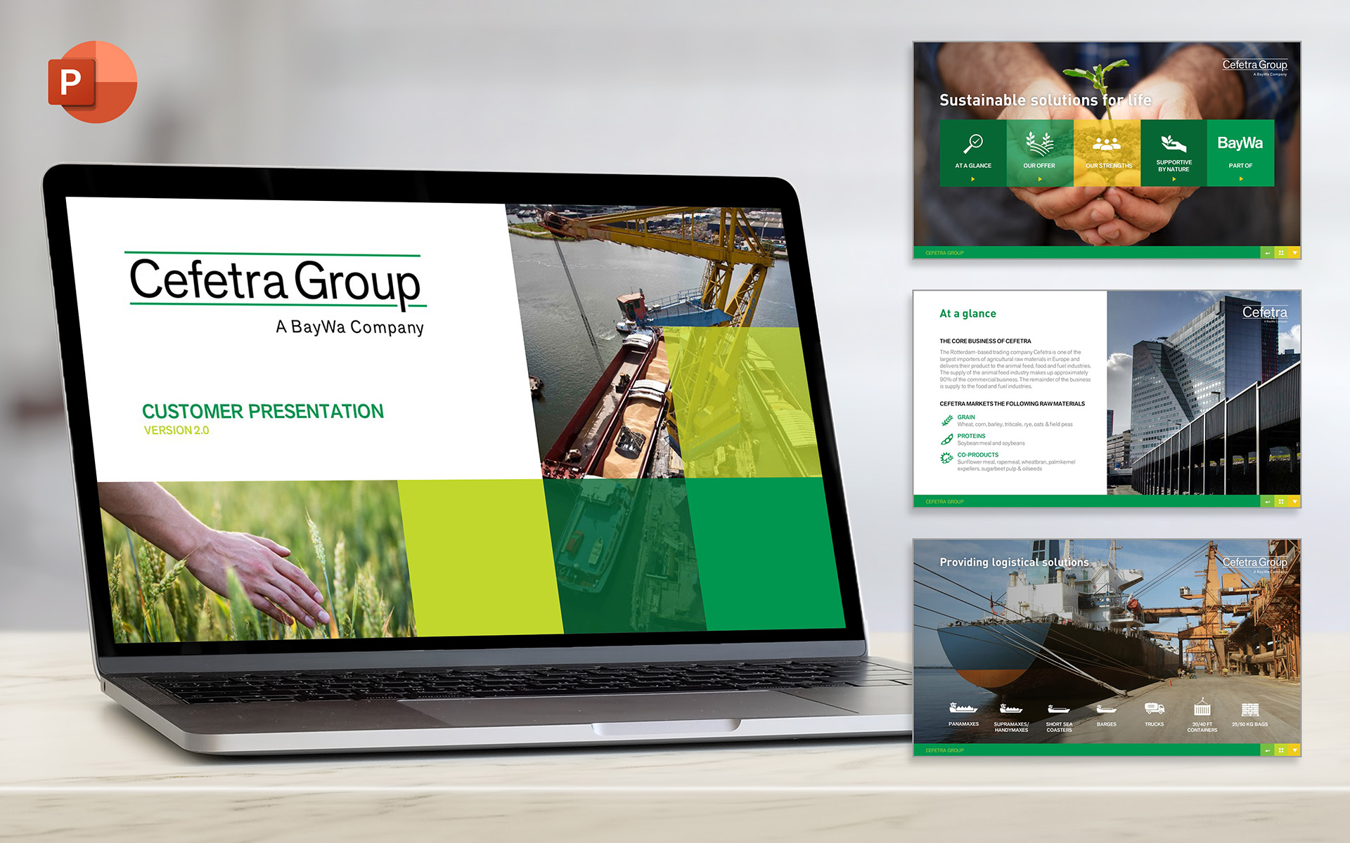 Cefetra is een internationale leverancier van agrarische grondstoffen voor de feed-, food- en fuelindustrie. Opgericht in 1899 met ervaring in Nederlandse landbouw en internationale handel. Cefetra wil toonaangevend zijn op het gebied van duurzaamheid in de supply chains. De directie en accountmanagers willen met deze corporate presentatie een goede eerste indruk maken op potentiële klanten en geïnteresseerde. De presentatie is interactief zodat er snel genavigeerd kan worden naar het juiste onderwerp.