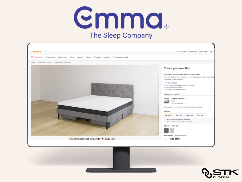 Het doel was om te onderzoeken hoe productpersonalisatie kan bijdragen aan een hogere gemiddelde orderwaarde en een betere winstgevendheid. Het resultaat was een intuïtieve, conversiegerichte interface die klantbetrokkenheid stimuleerde en een bijdrage leverde aan de digitale groeistrategie van Emma Sleep.