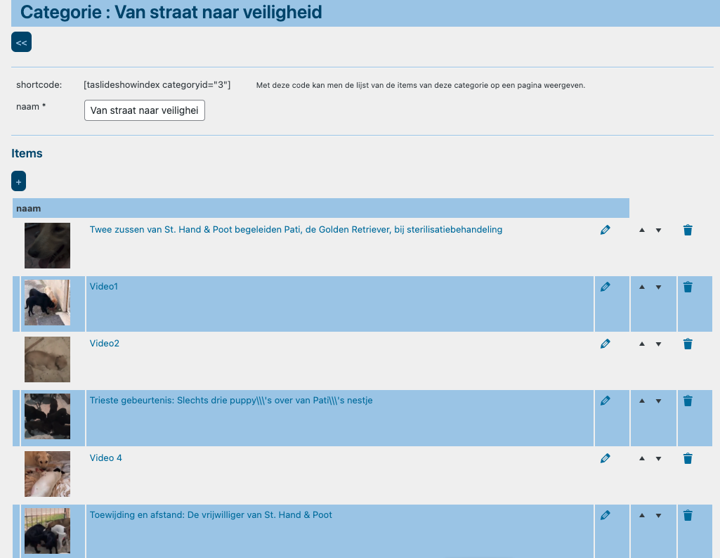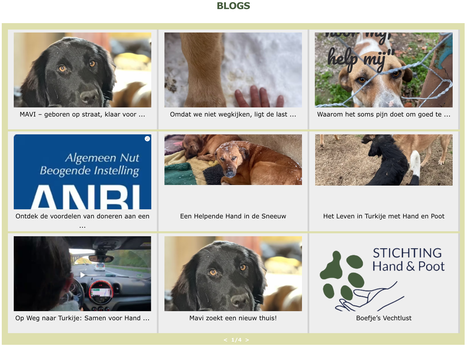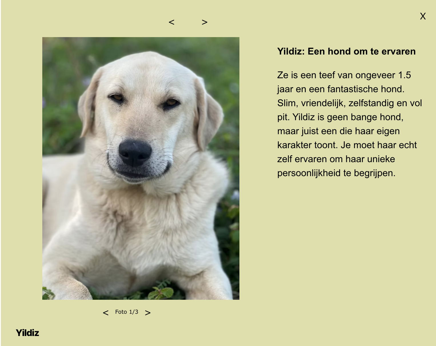 - Slideshow: De gebruiker kan foto's en video's van de beschikbare honden toevoegen. Deze plugin kan voor meerdere doeleinden worden gebruikt.